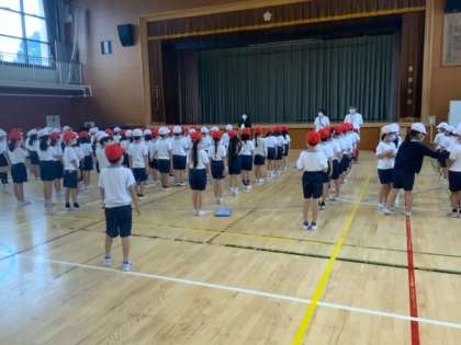 ?雨ですので2年生は、体育館でのプール開きです。それぞれがめあてを持って、安全に水泳に取り組んでいくことを確認しました。
