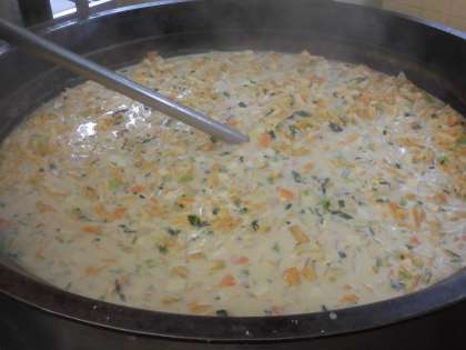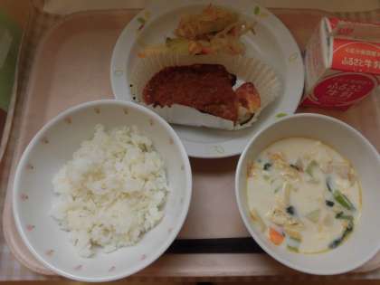 ☆今月の郷土料理は、奈良県の「飛鳥汁」です。飛鳥汁は、鶏肉や野菜の入ったみそ汁に牛乳を加えた汁ものです。みそ汁と牛乳という意外な組み合わせですが、全体がまろやかに仕上がりました。