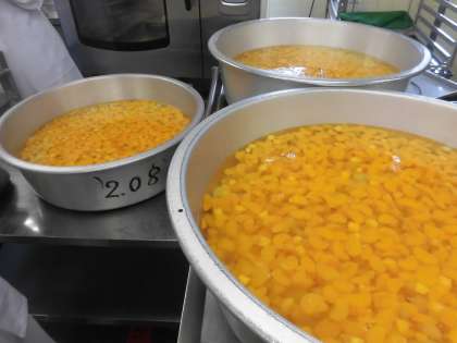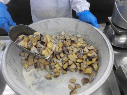 ☆今日の「シナモンポテト」は沢山のさつまいもを切り、給食の大釜で揚げました。