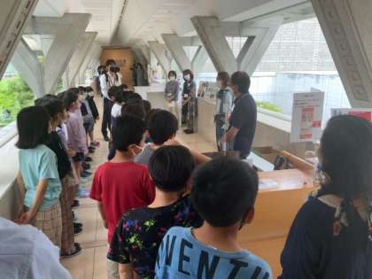 4年生は、観光バスで世田谷美術館へ出向いての美術鑑賞教室です。ピーターラビット展をしています。グループに分かれて、ボランティアの方の案内で館内を巡っていきます。