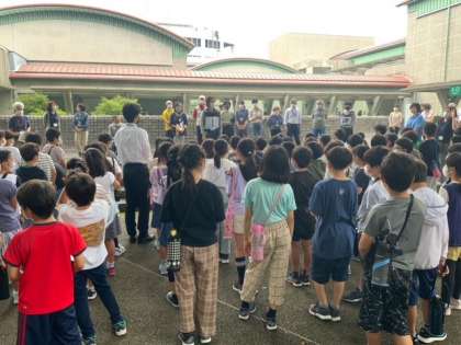 地下も見学させていただきました。玄関近くの広場に集まり、お世話になったボランティアの皆さんにお礼のことばを伝え、学校へ帰ります。