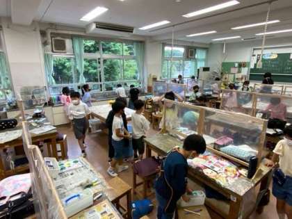 図工「芸術的なとうもろこし」です。好きな色を混ぜて、いろいろな味のとうもろこしをつくります。