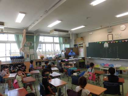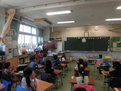 最後に、看護当番の先生から今週の生活目標についてお話がありました。今週の生活目標は、「教室移動は落ち着いて、歩いて行こう。」です。今週も、安全、体調に気を付けて過ごしたいですね。