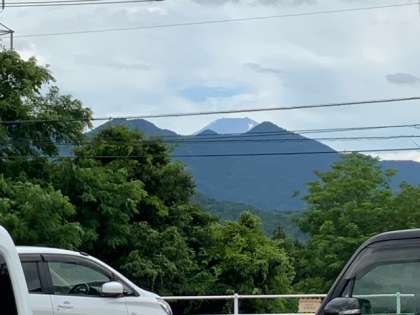 談合坂サービスエリアに到着しました。トイレ休憩です。山が多くなって東京との違いを話している子どももいます。富士山がチラリと見えます。