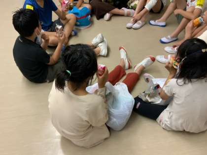 お風呂に入って、最後の夜なのでジュースで乾杯をしました。