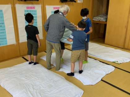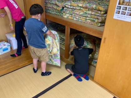 布団を片付けていきます。