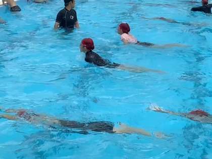 水泳です。6年生は、クロールと平泳ぎを中心に練習をしてしています。