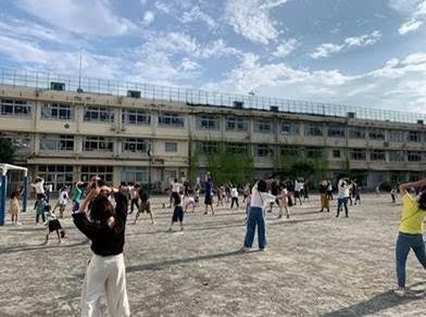 薄雲がかかって太陽が時折り顔を見せ、風が気持ち良い気候です。ラジオ体操の前に「体でジャンケン」をして気持ちを盛り上げ,生放送に合わせてラジオ体操を行いました。大人49名、子ども56(うち烏小児童48)名、計105名の参加がありました。学び舎の上祖師谷中学生のボランティアと、FATHERS烏山さんのお手伝いもありがとうございました。