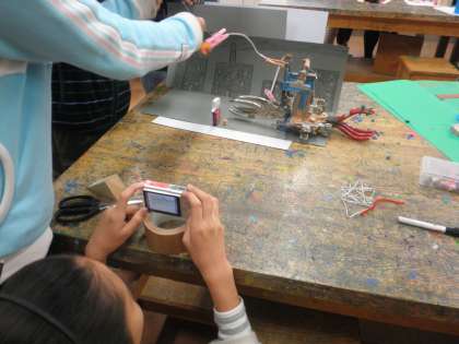 図工で6年生は、グループごとに協力してアニメーション作りをしています。立体の作品をデジカメで撮り、少しずつ動かしてまた、写真に撮るという作業です。みんな真剣に取り組んでいます。楽しそうな作品ができそうです。