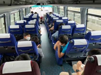 仙川駅まで歩いて移動し、予定通りの時間に出発しました。友達とおしゃべりしたり、車窓からの景色を楽しんだり、DVDを鑑賞したりして過ごしています。