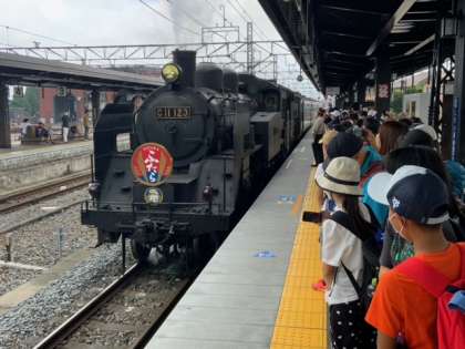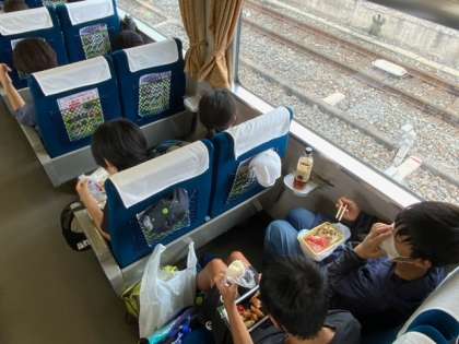 いよいよSLに乗り込み、お弁当です。車内には、解説が流れています。