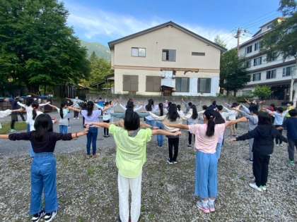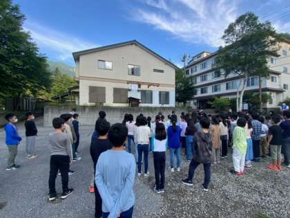 今朝は、とてもいい天気です。お昼頃の天気を心配しています。起床し、朝会です。皆、元気です。