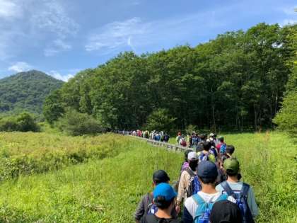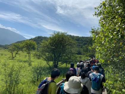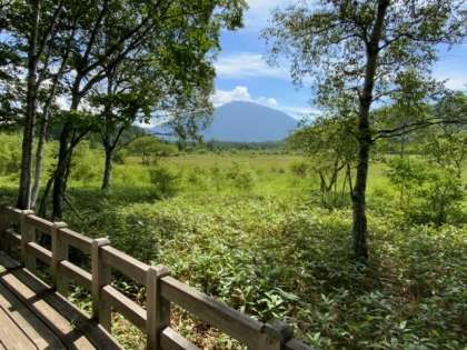 小田代原の木道です。とてもいい天気です。男体山もよく見えます。