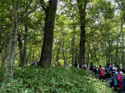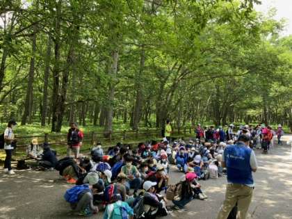 ?小田代原をずっと歩き、しゃくなげ橋付近まで来て休憩です。よく頑張って歩いてます。この後、竜頭の滝に向かいます。