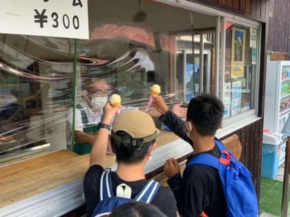 光徳牧場で昼食後そのままアイスクリーム売場へ向かいました。濃厚で美味しいと口々に言ってます。