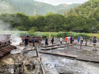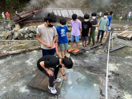 朝の会の後、そのまま周辺の散歩に出かけました。近くに源泉があります。