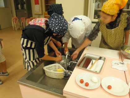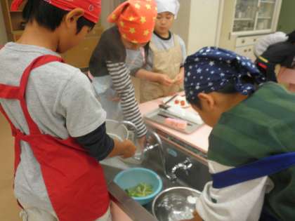 5年1組が調理実習でした。「ゆでたまご」「温野菜サラダ」を作っていました。経験のない子や慣れた子といろいろでしたが、みんな真剣に取り組んでいました。