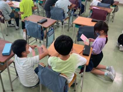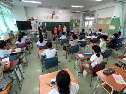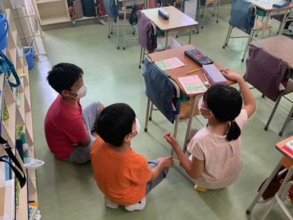 当番決めをしています。まずは、一学期に担当した当番の紹介をしています。