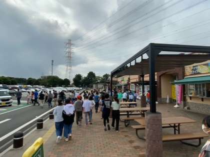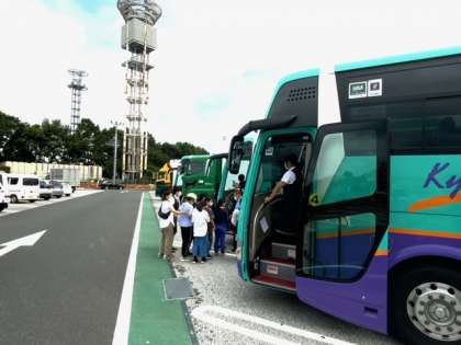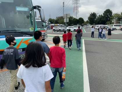 三芳パーキングエリアエリアでトイレ休憩です。都内を抜けるのに車が多く、時間がかかりました。同じ日程の中丸小学校にも会うことができました。