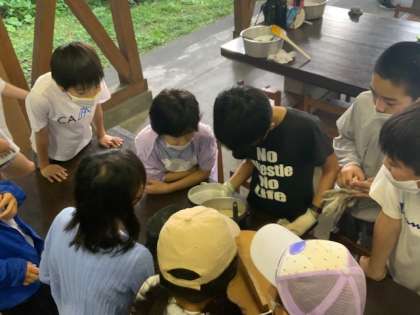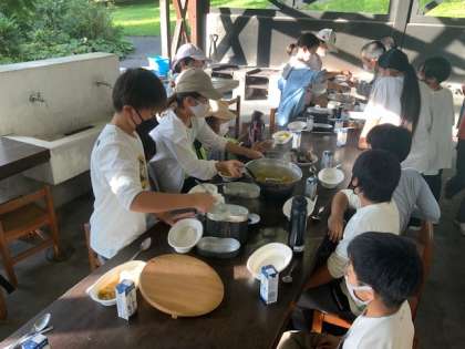 カレーが出来上がりました。飯ごうのフタを開ける時に、歓声が聞こえてきました。どこのグループもけっこう美味しそうにできています。