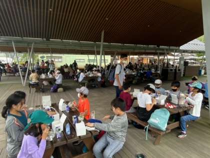 少し小雨が降ってきました。お昼は大きな屋根の下で食べられるので安心です。