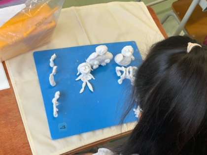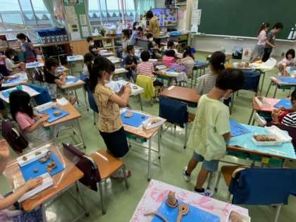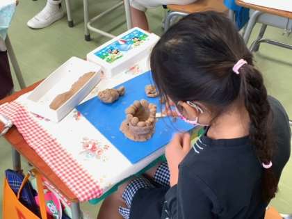 図工で粘土に取り組んでいます。授業の間の休み時間でしたが、夢中になって取り組んでいる子どもがたくさんいました。