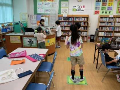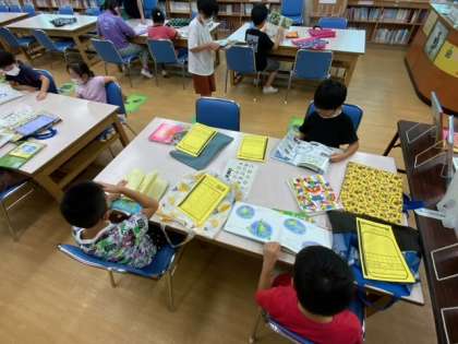 図書の時間です。気に入った本を借りたり、読んだりしています。