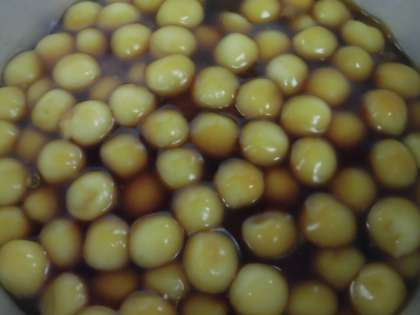 今日の給食は「月見だんご」です。明日は十五夜といって昔から十五夜に月を見る風習があります。給食室では白玉だんごに、みたらしダレをかけた、月見だんごにしました。