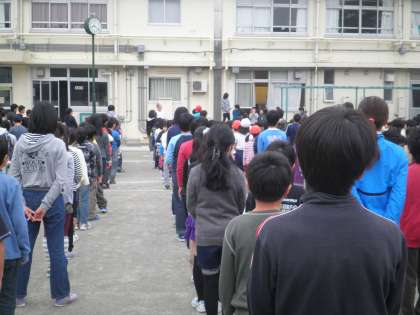 今日の集会を見て、6先生が本当に良く動いていました。遅れてきた子を探したり、前と後ろを6年生がはさんで、低学年に「間をちょっとあけて」と指示をしたりしていました。