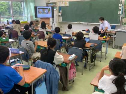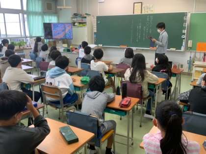 今日の朝読書は、担任の先生以外の先生からの読み聞かせです。誰が来るか子どもたちも楽しみにしています。それぞれの先生方が選んだ本をテレビに映すなどして読み、子どもたちは、興味を持って耳を傾けていました。