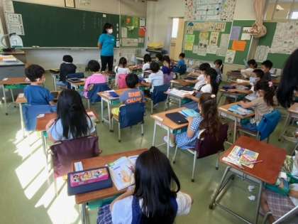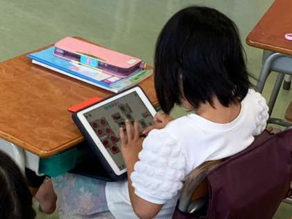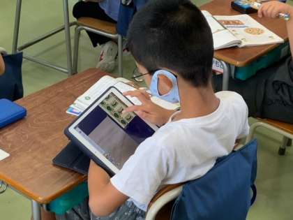 算数「かずをせいりして」の単元です。物の数を種類ごとに分類整理したり、絵や図に表したりすることができるようにしていきます。タブレットで野菜や文房具を分類していきます。大きさが違うので、分かりやすい並べ方を考えて工夫をしています。