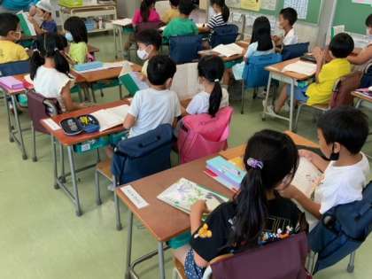 国語で新出漢字を練習した後、「こぶたかぞえうた」の文章を交代したりペアで読んだりして楽しく読んでいます。