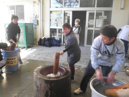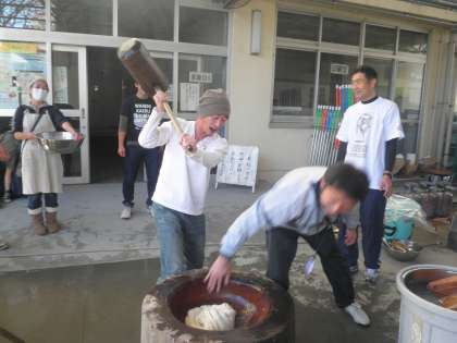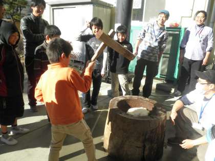 餅つきには烏山小学校の先生や、子どもたちも挑戦しました。