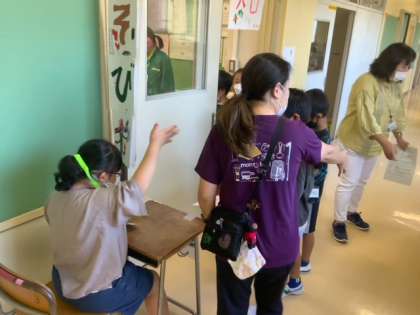 今日は、キッズフェスティバルです。校門で子どもたちを迎えたときから、子どもたちのワクワクした気持ちが伝わってきます。つくし学級での様子です。高得点が出ると歓声が上がっています。