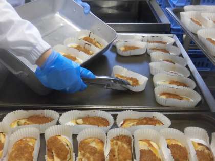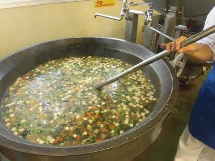 ☆今日の給食は「のっぺい汁」です。のっぺい汁は、くず粉や片栗粉等でとろみをつけたもので、全国各地に昔から食べられている郷土料理です。今日も給食室の大釜でたくさん作りました。
