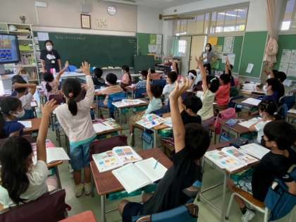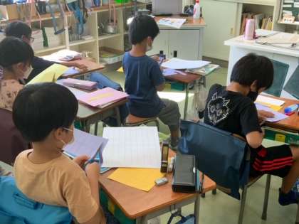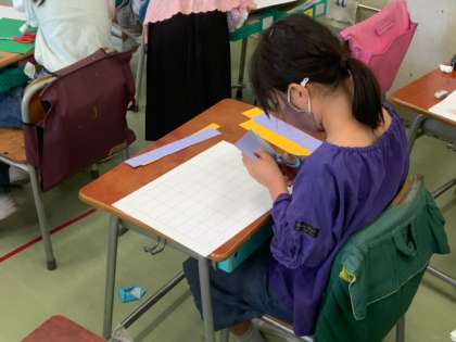 算数で正方形、長方形、直角三角形を使ってきれいな模様を作っていきます。