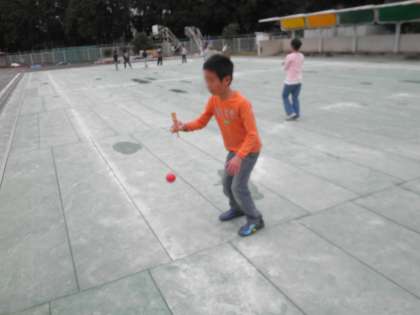 なかなか難しいようすの子もいますし、さっさと上手に乗れている子もいます。けん玉も真剣に何度も挑戦していました。