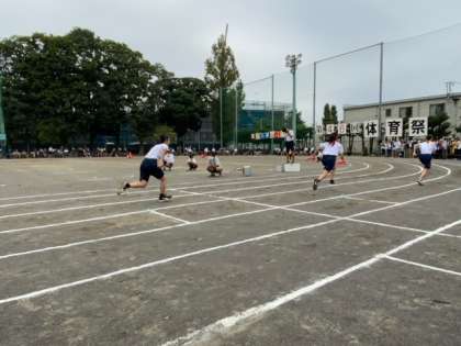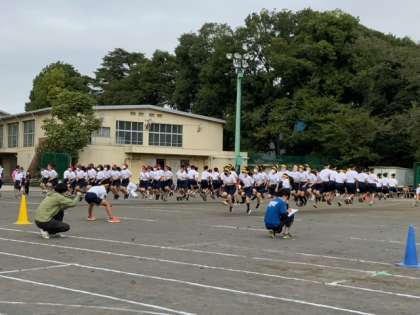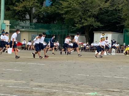同じ学び舎の上祖師谷中学校の体育祭です。小学生の時よりも体が成長して迫力があり、運営も子どもたちが活躍していてとても頼もしく思います。