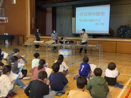 社会科でゲストティーチャーとして世田谷区の郷土資料館の方々をお招きして、世田谷ボロ市についてお話しをいただいてます。