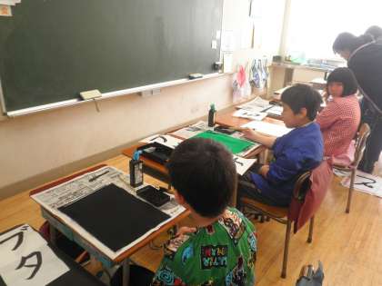 つくし学級でも書き初めに取り組んでいます。それぞれの好きな字を書いています。みんな真剣に取り組んでいます。