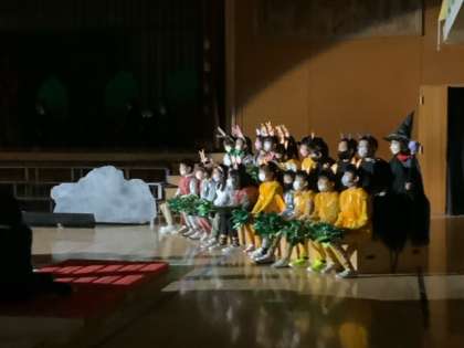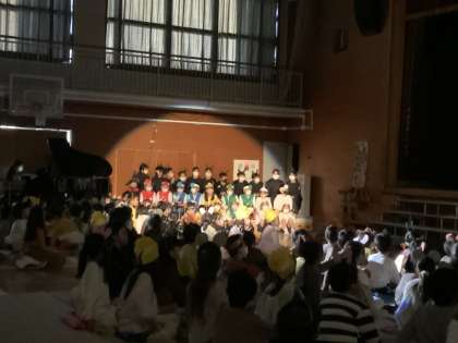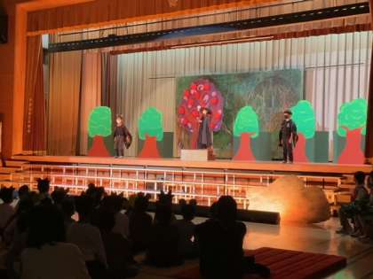 3年生は、「五色の森とやみのま女」です。会場の子どもたちと一緒に舞台をつくっていっています。