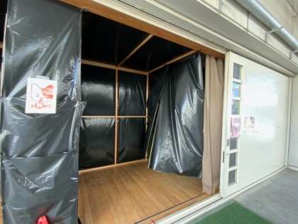 体育館では常時換気ができるように出入口にトンネルを設置しています。