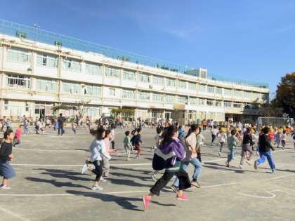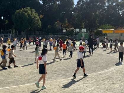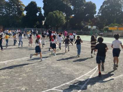 持久走旬間で、中休みの持久走が始まりました。今日は、1.3.5年生の子どもたちが校庭を走ります。つくし学級も、同じ学年で走ります。自分のペースで5分間走り、最後はクールダウンで1周歩きます。寒い季節に向けて風邪に負けない体をつくっていきましょう。