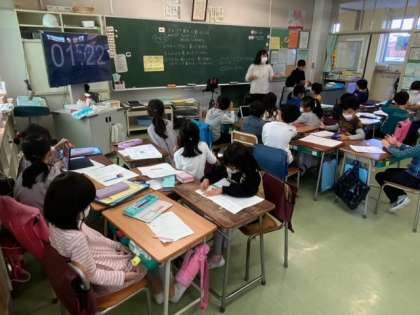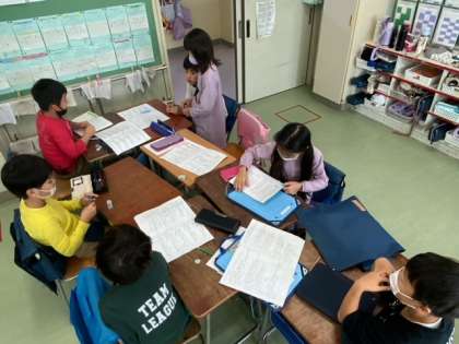 生活科の「町たんけん」でグループで見たこと聞いたことみんなで共有していきます。発表会に向けて準備を進めます。