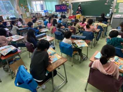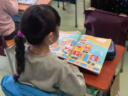 音楽でスピーカーから流れる楽器の音をきいて、好きな音を探します。鈴や小太鼓、タンブリンなどの音が聞こえてきます。リズムよく、楽しげな演奏に思わず拍手がわいてきました。ん