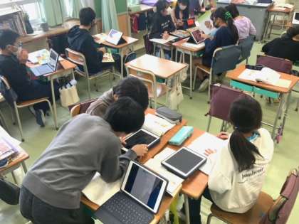 国語の「日本文化を発信しよう」で、テーマを決めてグループや個人でどんどん調べています。