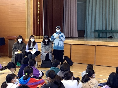 この日は、昭和女子大学に通っている留学生が9人来校して下さり、子ども達はこれまで調べてきたことを発表したり、日本の文化を紹介したりしました。