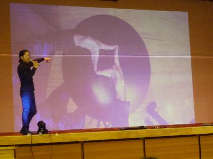 本日、体育館で3・4年生とつくし学級児童が、子供を笑顔にするプロジェクトの一環として「XTRAP」によるフィンガーダンスパフォーマンスの観覧をしました。