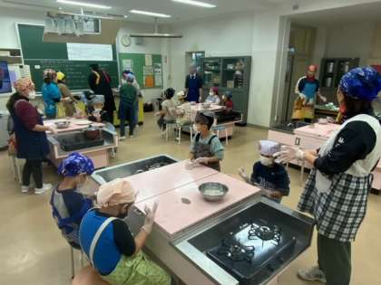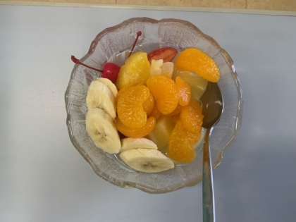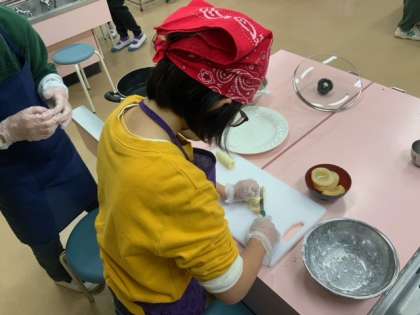 生活単元学習でのフルーツポンチづくりです。昨日買い物に行って、今日はいよいよ調理実習です。ゆでて白玉を作ったり、包丁でフルーツを切ったりして、最後に盛り付けました。とてもイキイキと取り組んでいます。