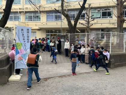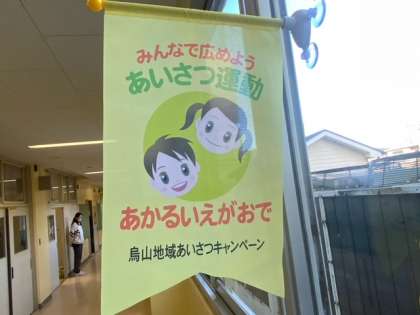 今日から烏山地域あいさつキャンペーンが始まりました。のぼり旗や校内には旗も掲示されています。あいさつが飛び交い気持ちのいい朝です。